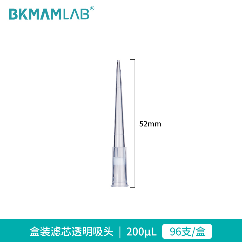 • 【帶濾芯低吸附】200uL 52mm 96支/盒 110201052