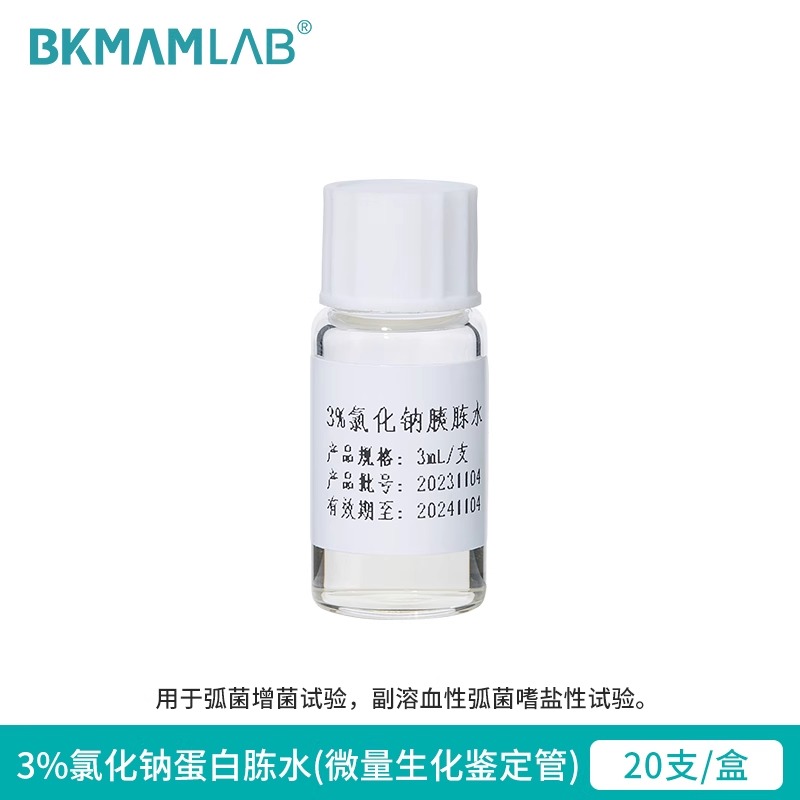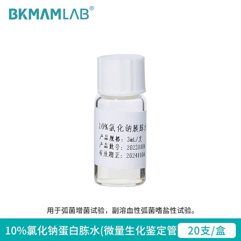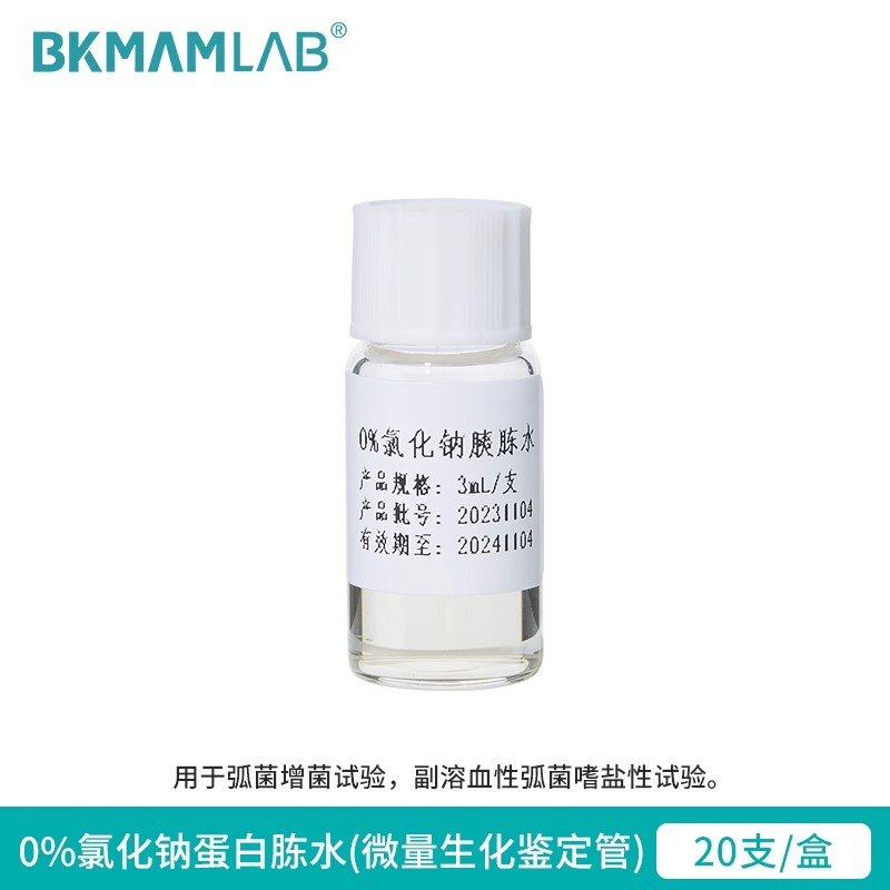 產(chǎn)品名稱:氯化鈉蛋白胨水(微量生化鑒定管) 產(chǎn)品品牌:BKMAMLAB 產(chǎn)品規(guī)格: