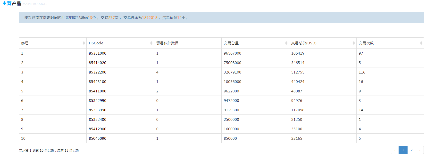 7. 同行公司:是這個(gè)采購商的同行企業(yè),也就是您的潛在客戶。除了上一點(diǎn)介紹的貿(mào)易伙伴數(shù)可以分析,重點(diǎn)監(jiān)控企業(yè)的交易關(guān)系,系統(tǒng)直接把關(guān)注企業(yè)實(shí)力相當(dāng)?shù)耐泄菊故境鰜?,便于分析?/span>