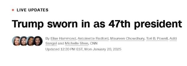 美國(guó)東部時(shí)間1月20日中午12點(diǎn),特朗普于國(guó)會(huì)大廈圓形大廳舉行的就職典禮上,正式宣誓成為美國(guó)第47任總統(tǒng)。