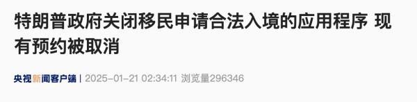 特朗普宣布美國(guó)南部邊境進(jìn)入國(guó)家緊急狀態(tài),派遣軍隊(duì)抵御其口中非法移民的“災(zāi)難性入侵”。同時(shí),關(guān)閉移民申請(qǐng)合法入境的應(yīng)用程序(CBP One),導(dǎo)致現(xiàn)有預(yù)約全部取消。