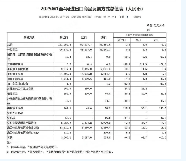 2025 年1-4 月進(jìn)出口額解析