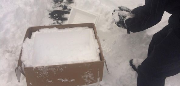 當(dāng)時(shí)這樣的包裝,在雪還沒(méi)有送達(dá)的時(shí)候,就已經(jīng)融化了。那怎么辦呢?