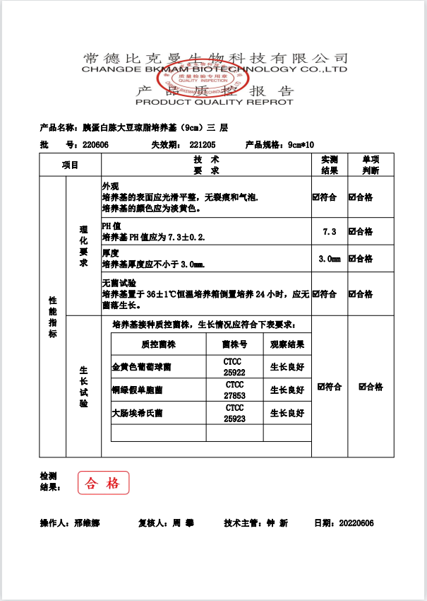 比克曼生物 胰蛋白胨大豆瓊脂(三層包裝) TSA瓊脂平板 9cm 10個袋 110704022 20220606