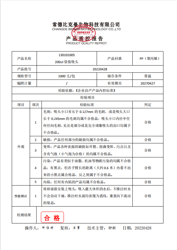 BKMAM 袋裝吸頭200ul 1000支 包 黃色 130101005 20220428