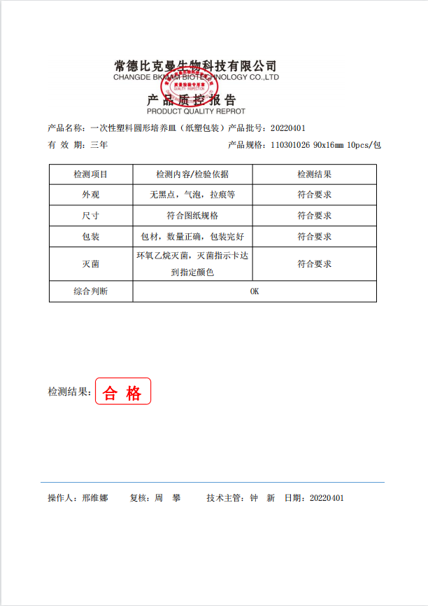 一次性塑料圓形培養(yǎng)皿 (紙塑包裝) 90x16mm 10個(gè)袋 110301026 20220401