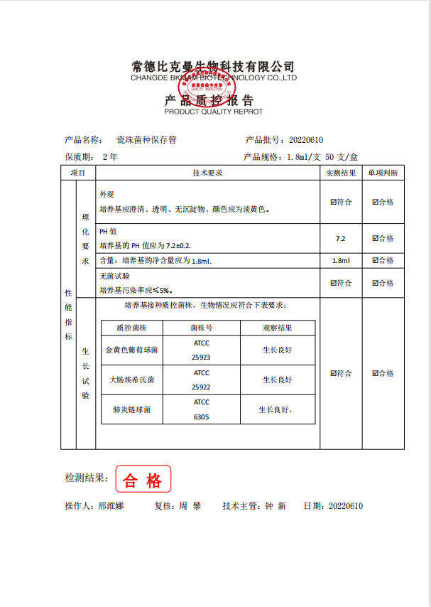 比克曼生物 瓷珠菌種保存管 50支盒 110401033 20220610