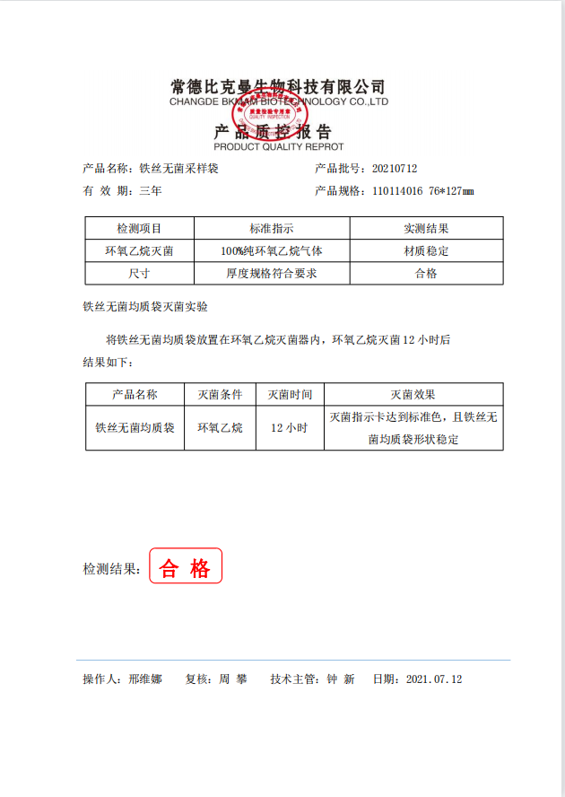 鐵絲無菌采樣袋 76x127 (帶書寫區(qū)域) 100個裝 110114016 20210712