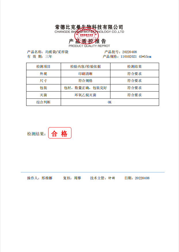 無菌采樣袋 45x55 (帶壓條) 50個裝 110102021 20220408