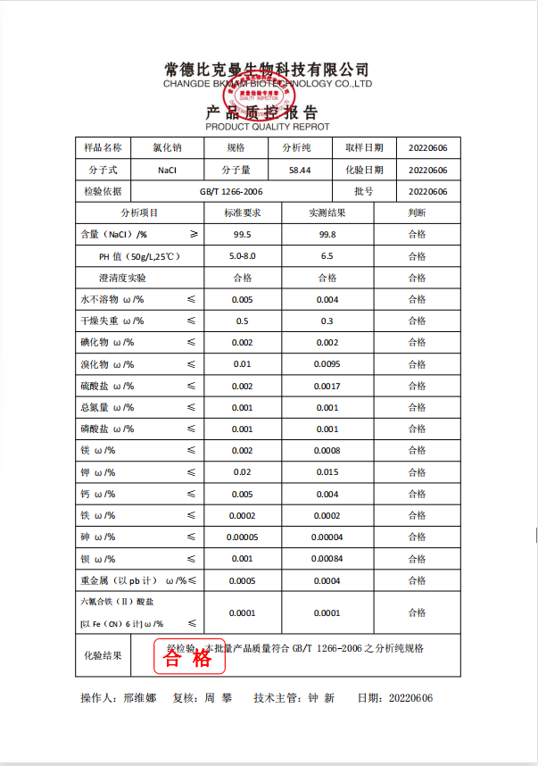 比克曼生物 氯化鈉 AR 分析純 500g瓶 110702034 20220606