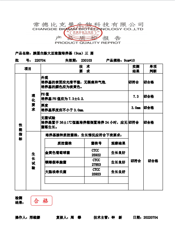 比克曼生物 胰蛋白胨大豆瓊脂(三層包裝) TSA瓊脂平板 9cm 10個袋 110704022 220704
