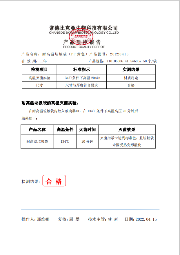 耐高溫垃圾袋生 黃色 41.5x60cm (PP復(fù)合膜材質(zhì)) 50個袋 110106006 20220415