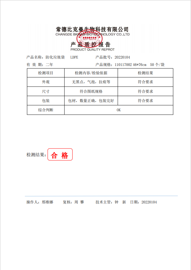 比克曼生物 防化垃圾袋 LDPE 黃色 46x76cm 50個(gè)袋 110117002 20220104