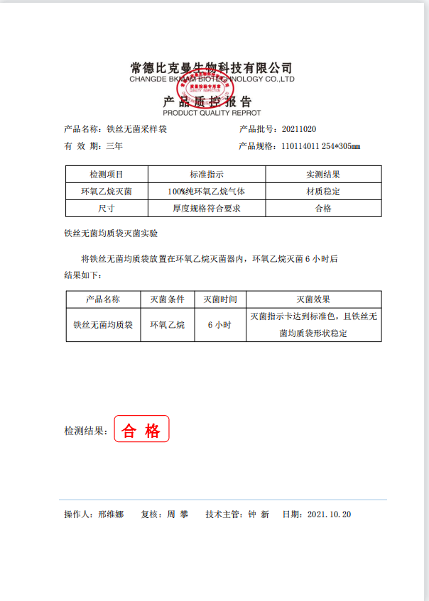 鐵絲無菌采樣袋 254x305 (帶書寫區(qū)域) 50個裝 110114011 20211020