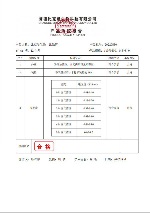 比克曼生物 比濁管 110703001 0.5-5.0 20220530