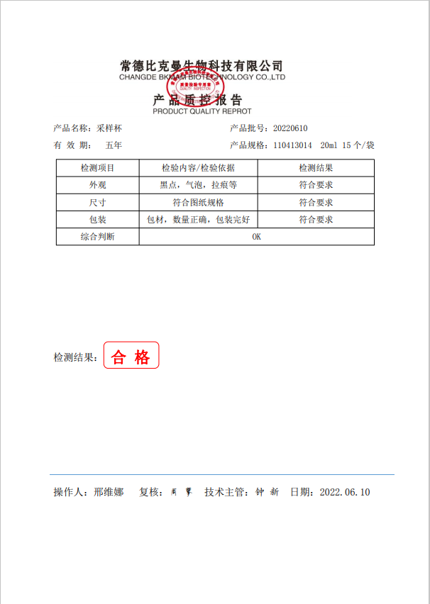 比克曼生物 采樣杯 20ml 15個袋 110413014 20220610