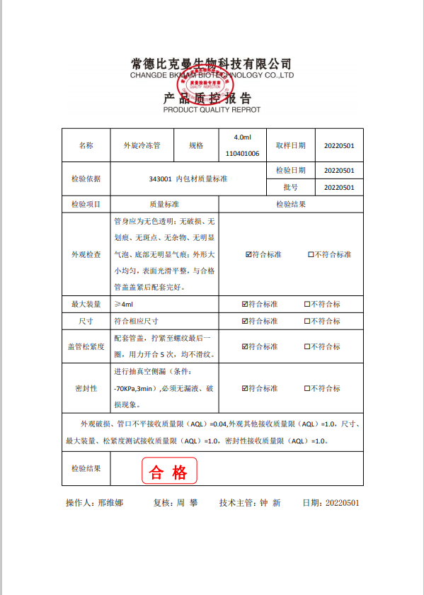 外旋冷凍管 (凍存管) 4.0ml 100個袋 110401006 20220501