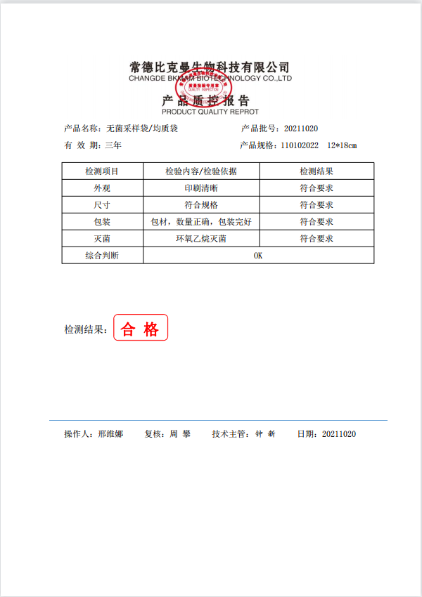 無(wú)菌采樣袋 12x18 (帶壓條) 100個(gè)裝 110102022 20211020