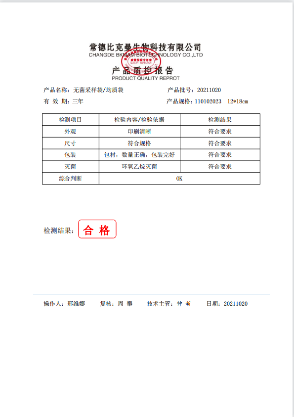 無菌采樣袋 12x18 (有印刷無LOGO帶壓條) 100個裝 110102023 20211020