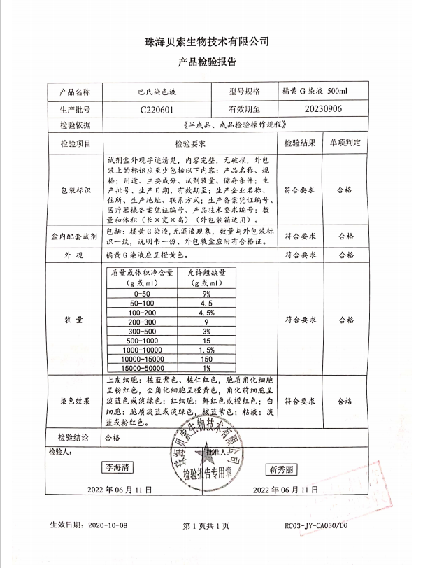 貝索 巴氏染色液 橘黃G 500ml BA4035A C220601
