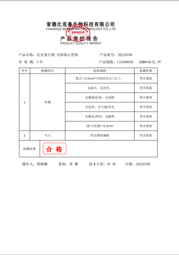 比克曼生物 可拆離心管架 20MMx40孔 PP 110409046 2022.07.08