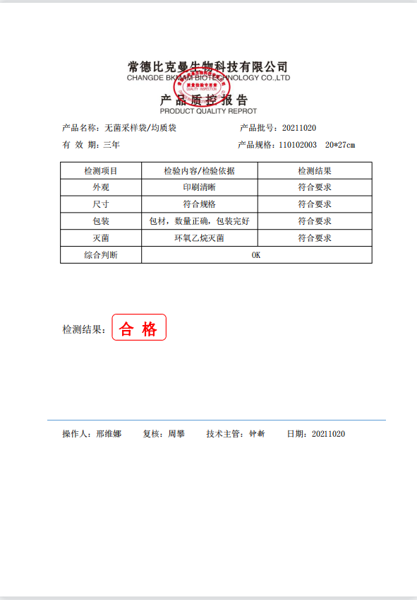 立式無(wú)菌采樣袋 20x27(帶壓條) 100個(gè)裝 110102003 20211020