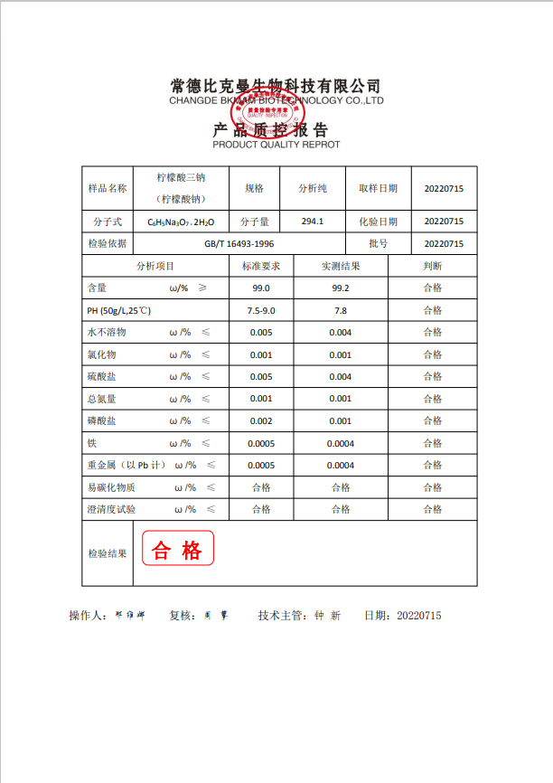 比克曼生物 檸檬酸三鈉 (檸檬酸鈉)AR 分析純 500g瓶 110702038 20220715