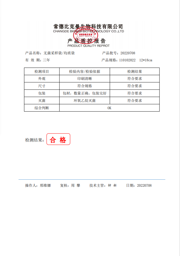 無菌采樣袋 12x18 (帶壓條) 100個裝 110102022 20220708