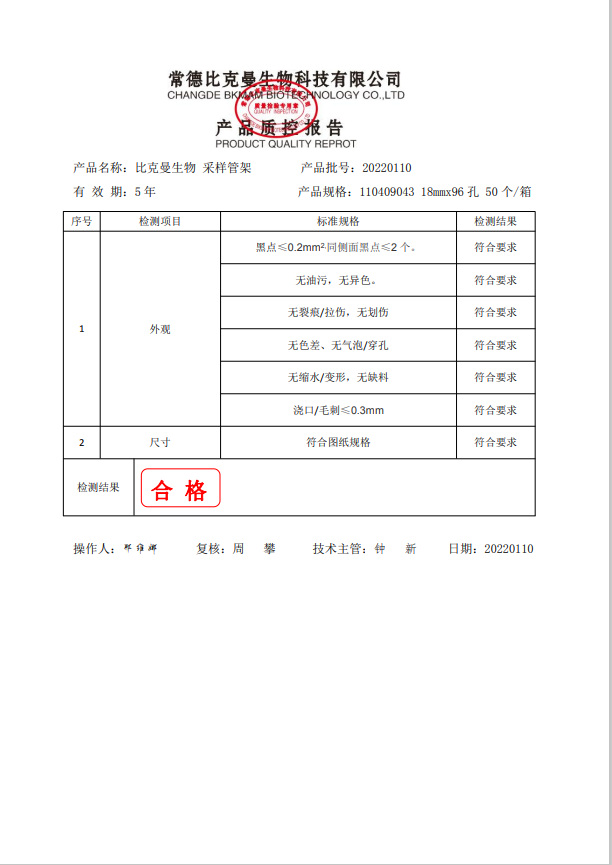 比克曼生物 采樣管架96孔 18mmx96孔 PP 110409043 20220110