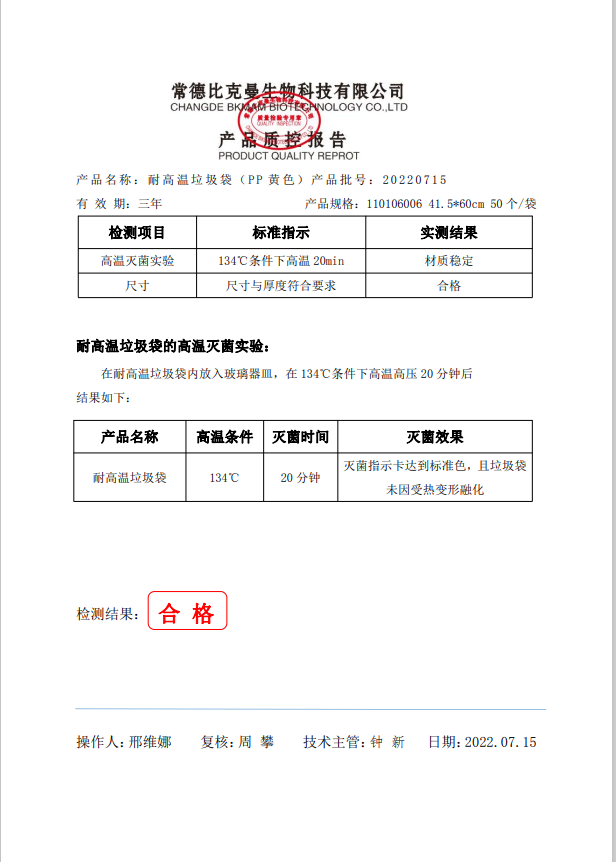 耐高溫垃圾袋生 黃色 41.5x60cm (PP復(fù)合膜材質(zhì)) 50個袋 110106006 20220715