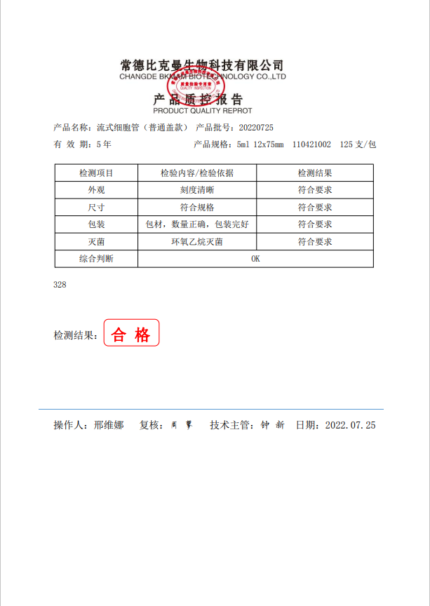 比克曼生物 流式細(xì)胞管(普通蓋款) 5ml 12x75mm 125支袋 110421002 20220725