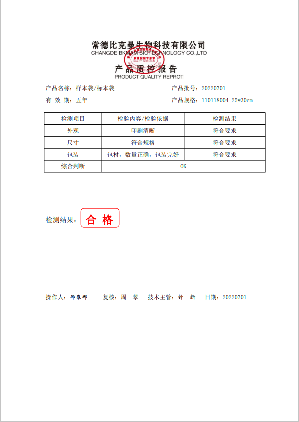 比克曼生物 樣本袋 25x30cm 100個 袋 110118004 20220701