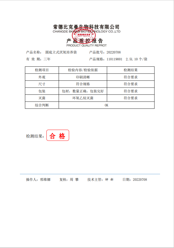 比克曼生物 2.5L圓底立式厭氧培養(yǎng)袋 10個(gè)袋 110119001 20220708