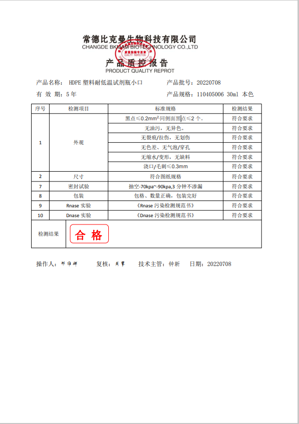 比克曼生物 HDPE 塑料耐低溫試劑瓶小口 30ml 本色 110405006 20220708
