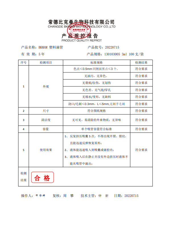 BKMAM 塑料滴管(獨(dú)立裝) 3ml 100支袋 130103005 20220715