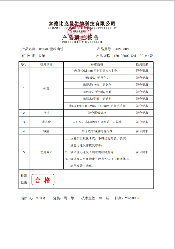 BKMAM 塑料滴管 5ml 100支袋 130103002 20220808