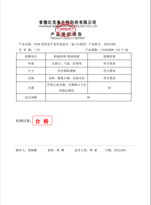 PCR八連排管 0.2mlPCR8連管連平蓋管蓋連在一起(全透明) 125個(gè)盒 110404006 20221003