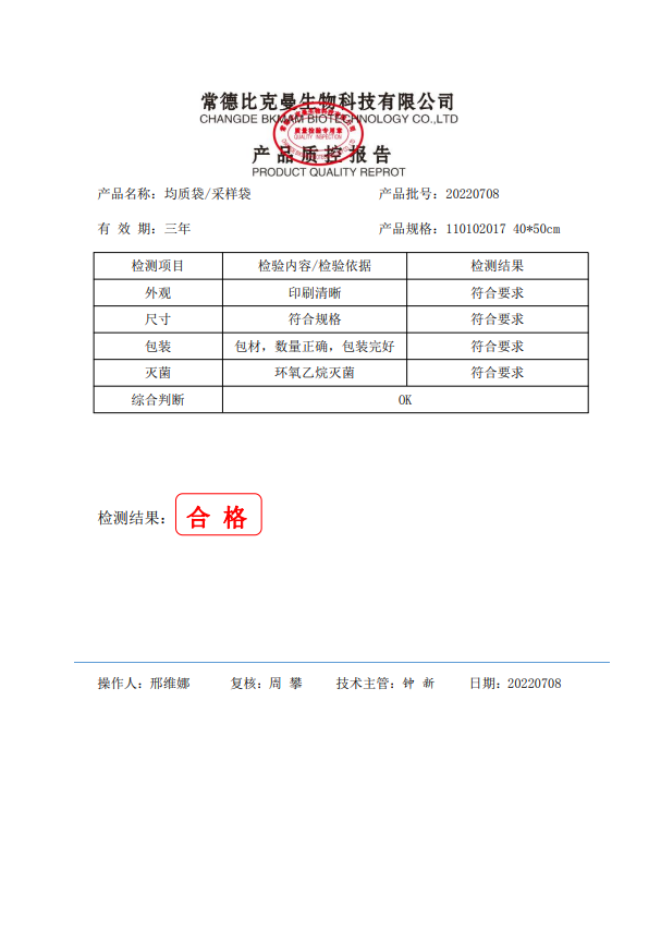 無(wú)菌采樣袋 40x50 (帶壓條) 50個(gè)裝 110102017 20220708