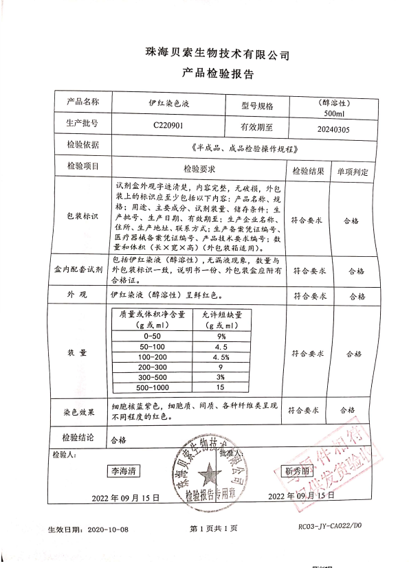貝索 伊紅染液(醇溶性) 1000ml BA4022 C220901