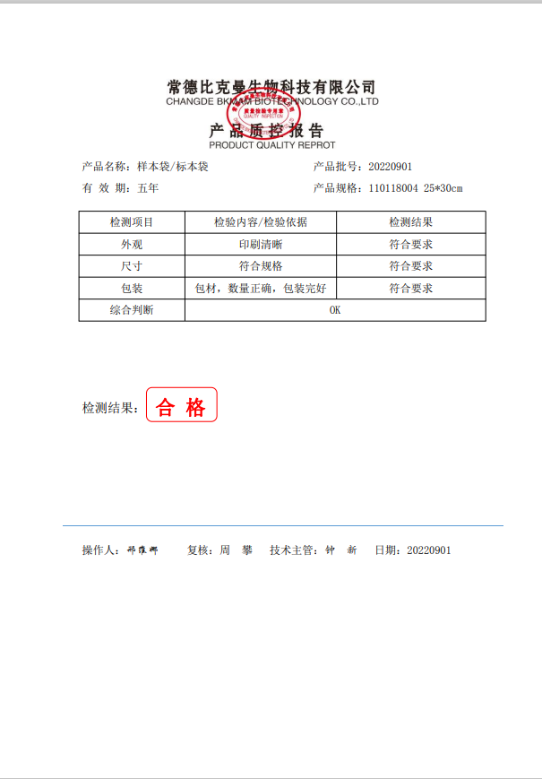 比克曼生物 樣本袋 25x30cm 100個(gè) 袋 110118004 20220901