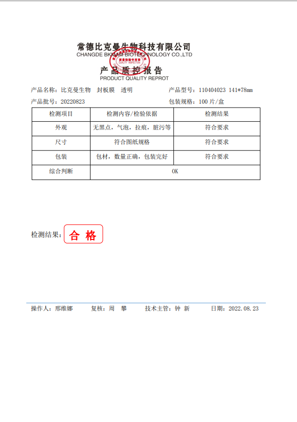 比克曼生物 比克曼生物 熒光定量PCR封板膜 141x78mm100片盒 110404023 20220823