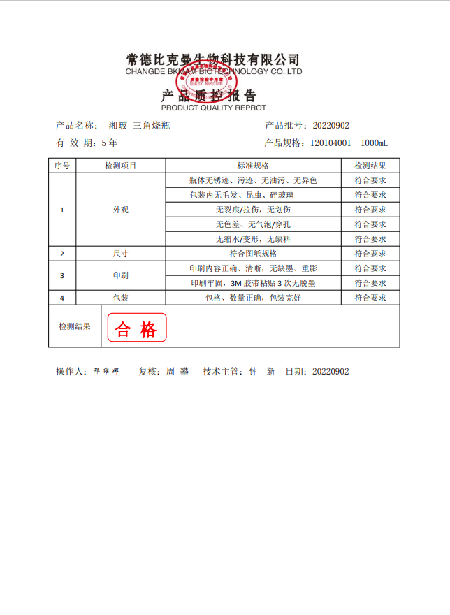 湘玻 三角燒瓶 1000mL 大口 120204001 20220902