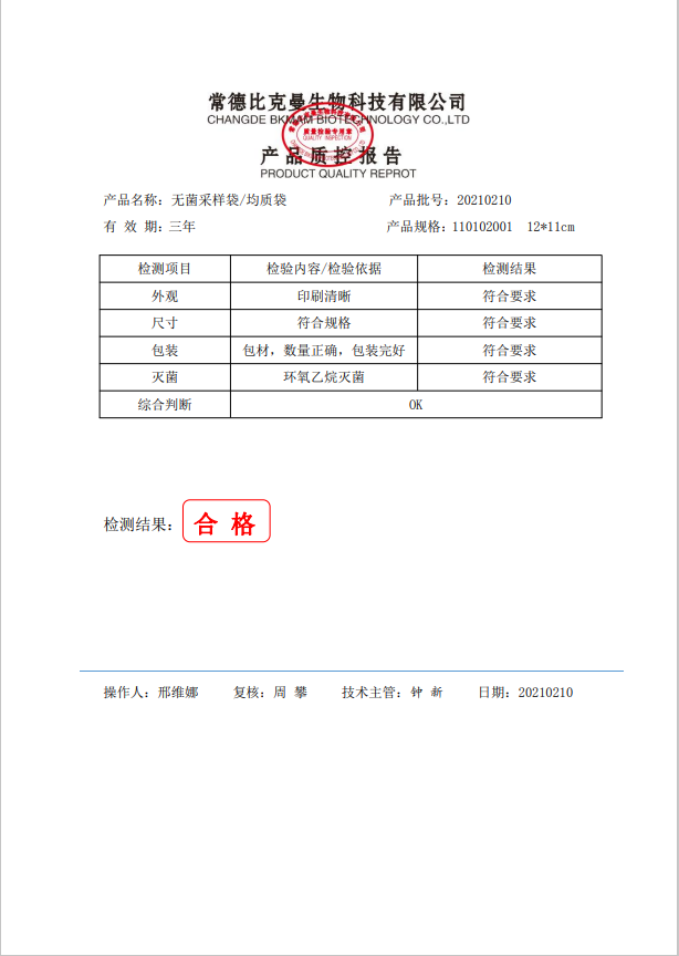 無菌采樣袋 12x11 (帶壓條) 100個(gè)裝 110102001 20210210
