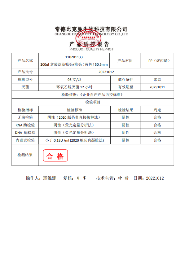 110201133 200ul 盒裝濾芯吸頭 槍頭(黃色)50.5mm 96支裝 20221012