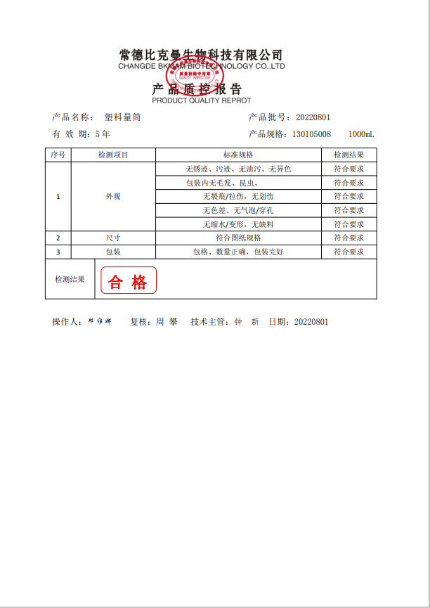 BKMAM 塑料量筒1000ml 130105008 20220801