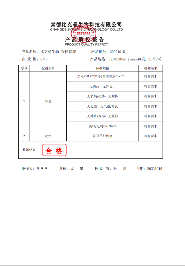 比克曼生物 采樣管架48孔 26mmx48孔 PP 110409054 20221015
