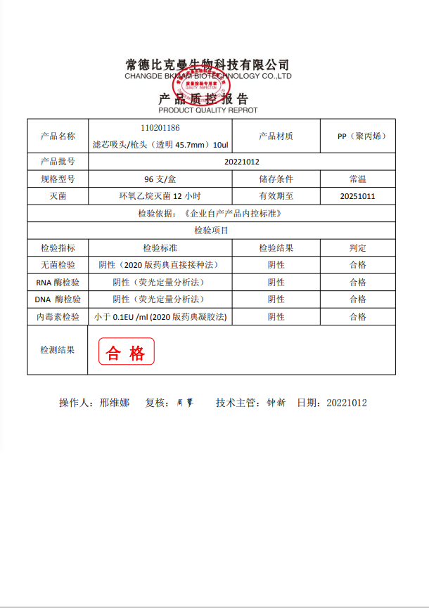 110201186 濾芯吸頭槍頭(透明 45.7mm) 10ul 96支裝 20221012