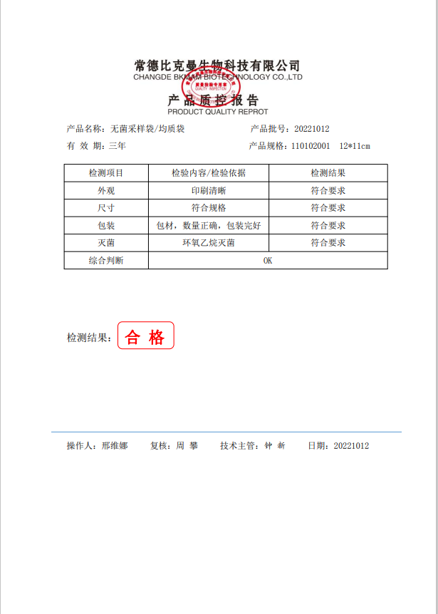 無菌采樣袋 12x11 (帶壓條) 100個(gè)裝 110102001 20221012