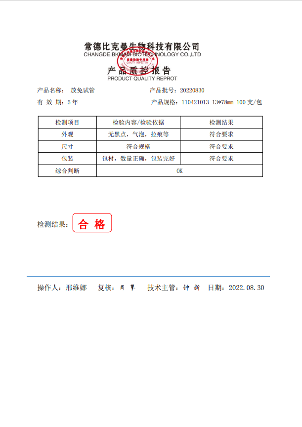 比克曼生物 放免試管 13x78mm 110421013 100支包 20220830