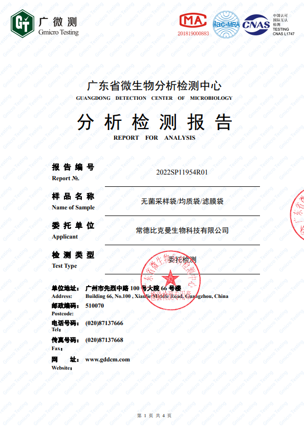 第三方報(bào)告 2022SP11954R01-無(wú)菌采樣袋均質(zhì)袋濾膜袋20221012